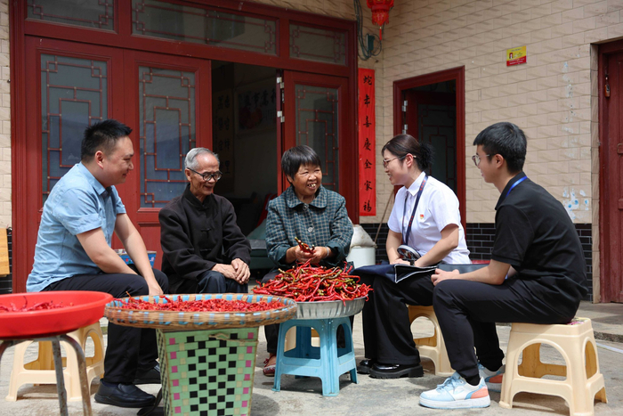 贵州省大方县纪委监委组织纪检监察干部深入基层一线,聚焦惠农政策落实、涉农补贴资金发放等情况进行监督检查,摸排收集问题线索,持续推动惠民政策落地见效。图为该县纪检监察干部在凤山乡谢都村向群众了解相关情况。(贵州省大方县纪委监委供  李横 摄)