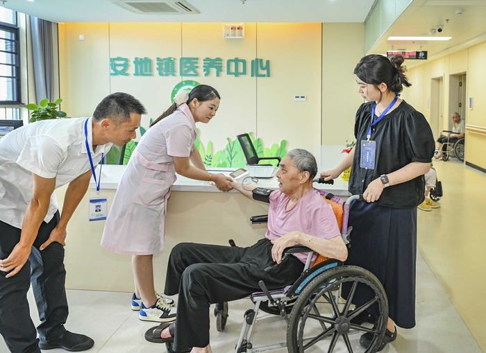 浙江省金华市婺城区纪委监委紧盯民生重点领域,强化“组地”联动,下沉监督力量,严惩“蝇贪蚁腐”,守护民生民利。图为该区纪检监察干部在安地镇医养中心了解居住老人生活保障情况。(浙江省金华市婺城区纪委监委供  吴敬连 摄)